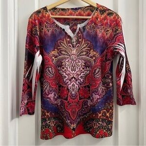 Style & Co. Multicolored Rhinestone V Neck Top, 3/4 Sleeve, size Large petite