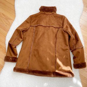 Style & Co NWOT Faux Fur Shearling Jacket Fur Lined 2 Zip Pockets Brown Sz 0X