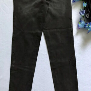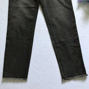 NWT. Dark Grey Slim Leg Jeans for Women Size 4. Zipper and button for closure, 5 pockets design, has loops, embellishments style shown in pic, ankle, frayed leg openings. As per tag it is "high rise" and color is known as "Shadow". Pictures are part of description.