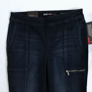 NWT. Dark Wash Jegging for Women Various. Pull on style, 2 side and back pockets, zipper design by midthigh, mid rise. Content states it has "2% spandex". Please see measurements for best sizing. Pictures are part of description.