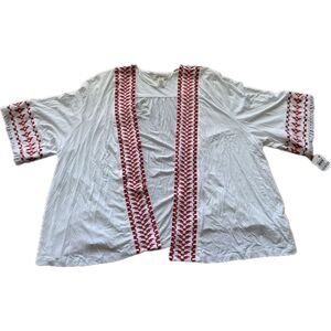 Style & Co NWT White and Red Fringe Style Kimono Women’s Size 1X