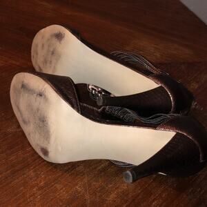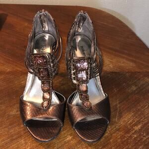 This is a super cute pair of Style & Co bronze faux drusy open toe pumps. They have a bask zipper for easy access and are in excellent used condition. They are a size 8M.
