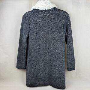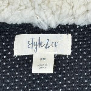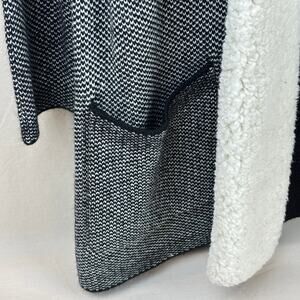 Style & Co Open Front Long Cardigan Faux Sherpa Collar Cozy Knit Black White PM