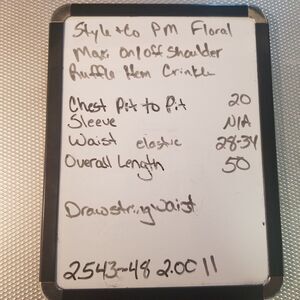 Style & Co PM Petite Medium Dress Maxi Crinkle Multicolor Floral On/off Shoulder ruffle hem Cottagecore BOHO Bohemian Coquette Fairy