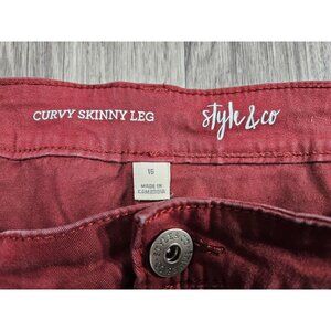 Style & Co Pants Womens 16 Red Curvy Skinny Leg Stretch Denim Jeans Casual