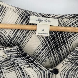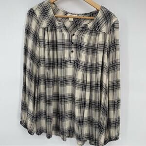 Style & Co. Peasant Blouse Plaid Bohemian Balloon Sleeve Oversized XL