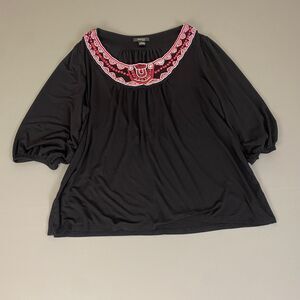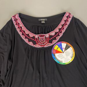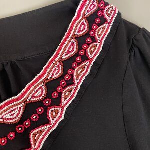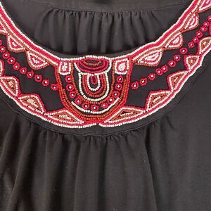 Style & Co Peasant Top Boho Blouse Plus Size 3X Black Beaded Neck Detail