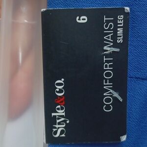 Style & Co Periwinkle stretch, slim leg, side zip pants, sz 6
