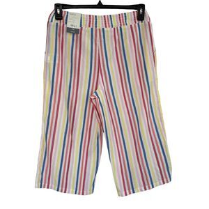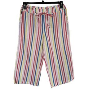 Style & Co Petite Medium Capris Pants Striped Wide Leg Smocked Waist Gauzy Multi