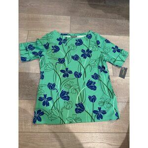 Style & Co Petite Tulip Menagerie Elbow-Sleeve Knit Top Tulip Green Large Petite