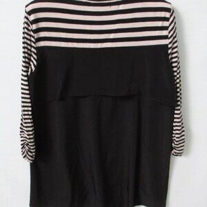 Style & Co Petite black tan striped rayon blend 3/4 sleeve knit top *Sz PM*