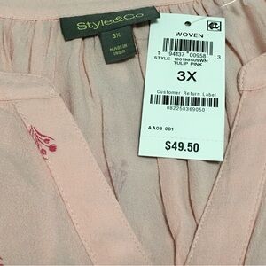 Style & Co Plus Size 3X Pink Tulip Split Button V-Neck Short Sleeve Shirt