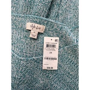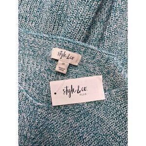 Style & Co Plus Size Sweater Top Women's 2X Green White V-Neck Oversized Relaxed