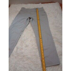 This is a Style & Co women's pull-on leggings in size 4, made of gray denim. It features a mid-rise with an 28-inch inseam, belt loops, and 2 pockets. The leggings are a cotton blend with a medium fabric wash, suitable for all seasons. It has a classic style with a solid pattern and is machine washable. This versatile piece is perfect for a timeless and comfortable look.