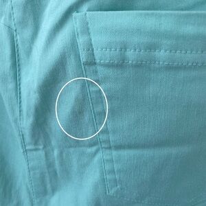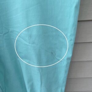 Mid rise Slim fit through hips and thighs Slim cropped leg Pull-on styling with comfort waist Faux front pockets; pockets at back Stretch fabric Color: aqua Retail $56.50 Great condition. Small light marks in 3 areas. See pictures with circles.