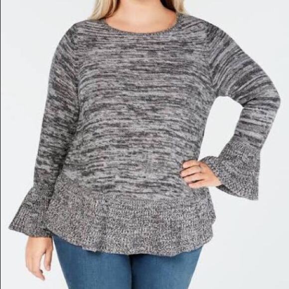 Style & Co. Pullover Bell Sleeve Peplum Sweater-0X