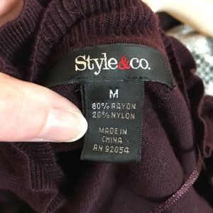 This dark purple rayon & nylon Style & Co. cardigan has a single clasp as shown, but can be worn open as well. Worn a handful of times, great condition. Size medium.