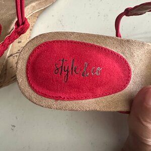 Style & Co Red Braided Strap Cork Wedge Sandals