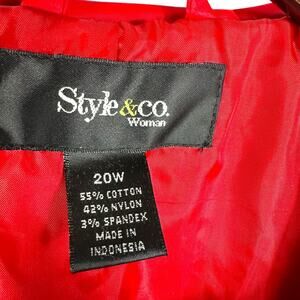 Stay dry and stylish with this vibrant red rain coat from Style & Co! This plus size 20W coat is in excellent condition and ready to brighten up any rainy day.