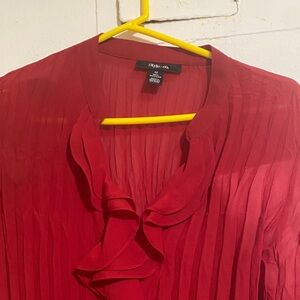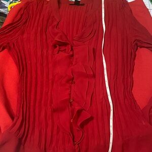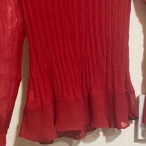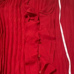 Elegant red blouse with ruffle detail. Long sleeves and pleated design. Have fancy buttons in front, you can wear open or close, Polyester, very good condition, open to offers! Feel free