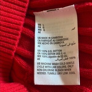 Style & Co Red V-Neck Sweater Cable Knit 100%Cotton