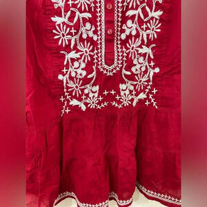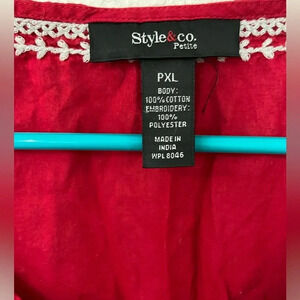 Gorgeous deep red color with white embroidery. Tiered style for flattering fit. Style & Co. XLP