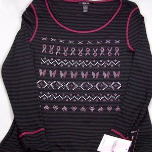 Style & Co. (Supporting Susan G. Komen) "Rows of Hope" Long Sleeve Tunic Top. Material is 52% Cotton, 48% Rayon.