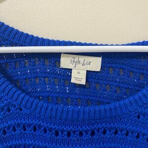 Style & Co Royal Blue Open Knit Long 100% Cotton Sweater Size XL