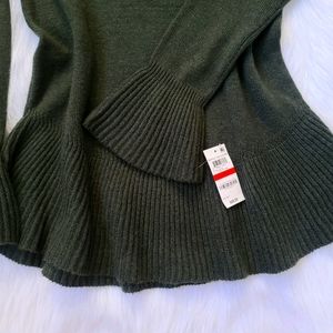 Style & Co Ruffle Pullover Dark ivy opd