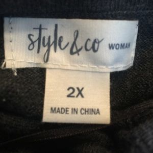 Style Co Plus Size Black Heather Ruffled-Sleeve Pleated V-Neck Sweater