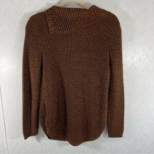 Style & Co Rust Brown Cowl Neck Sweater Envelope Neckline Button Trim Ribbed