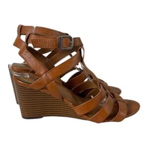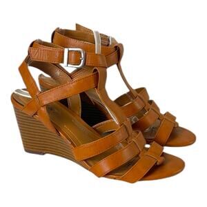 Style & Co. Sandals 3” Wedge Heel Strappy Open Toe Vegan Caramel Brown Size 7M