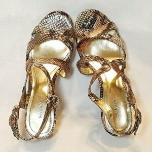 Style Co. Sandals Wedge Strappy Sz 6 Brown Black Snake