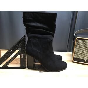 Style & Co Saraa Slouch Mid Calf Boots Women's 8 Black Suede Zipper Almond Toe