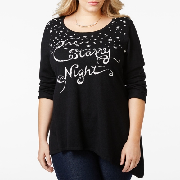 Style & Co. Plus Size Embellished Script-and-Snowflake Design Asymmetric Tunic