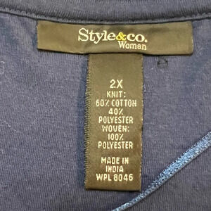 Style & Co Short Sleeved Navy Tee with Silky Pleated Back. Size 2X.