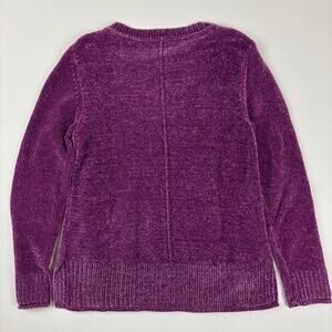 Style & Co Size Small Purple Soft Chenille Split Hem Crew Neck Pullover Sweater