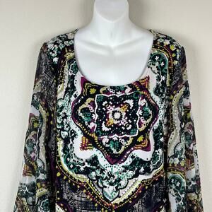 Style & Co Size XL Floral Tunic Top 3/4 Sheer Sleeve Stretch Scoop Neck