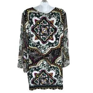 Style & Co Size XL Floral Tunic Top 3/4 Sheer Sleeve Stretch Scoop Neck Mini Dress