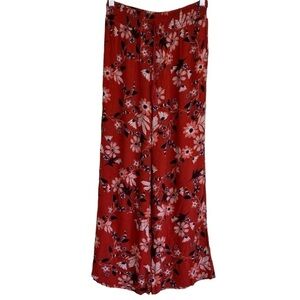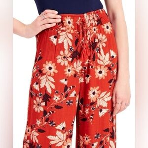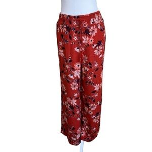 Style & Co. Smocked Waist Wide Leg Boho Hippie Pants Burnt Orange Floral Sz M