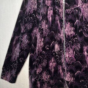 Style & Co Sport Womens 1X Velour Jacket Purple Black Abstract Full Zip LW