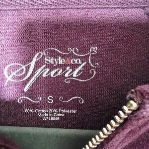 Style & Co Sport Womens Hooded Jacket Small Full Zip Snap Pockets Deep Plum