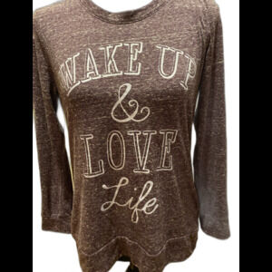 Style & Co Sport Women’s T Shirt Size Small Purple “Wake Up & Love Life”