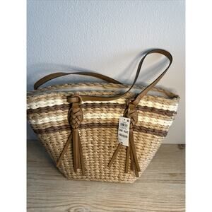 Style & Co Straw Tote Natural Stripe New NWT $99 Retail Brand