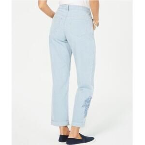 Style & Co's curvy-fit boyfriend jeans check all the right fashion boxes, designed in a striped stretch-enhanced cotton adorned with charming floral embroidery. Mid-rise Zipper and button closure at front; belt loops Floral embroidery at lower outer leg and hip Cotton/polyester/spandex Machine washable Imported Web ID: 7939357 Size: Womens 18 Condition: New