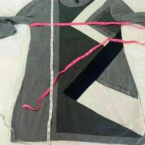 Style Co‎ Sweater MED Sequin Color Block Lightweight 3/4 Sleeve