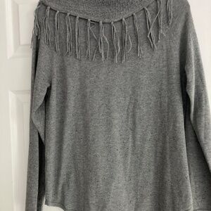 Gorgeous grey fringe cowl neck sweater. Great condition. Machine washable cotton.