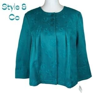Style & Co Teal Green Textured Floral Pattern Cottagecore Jacket NWT