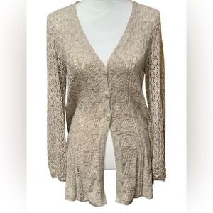 Style & Co. Textured Light Tan 3 Button Long Cardigan With Open Bottom
