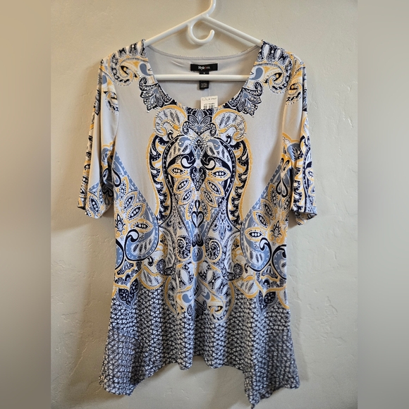Style & Co. long "Madrid Scarf" design top. Size Medium. Great condition.